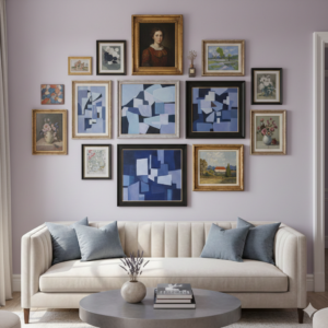 2. ترکیب سبک‌ها و دیوارها ترکیب سبک‌های مختلف با دقت، تجربه بصری جذابی ایجاد می‌کند. دیوارهای ترکیبی سنتی و مدرن با قاب‌ها امکان نمایش آثار متنوع را به صورت هماهنگ فراهم می‌آورند.